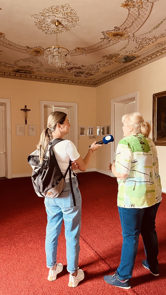 Apponyiovci zanechali Oponiciam v okrese Topoľčany veľký kaštieľ s knižnicou. No mali tam ešte aj menšie sídlo, niečo ako "letný byt", do ktorého sa šľachtici chodili väčšinou len zabávať. Aktuálne v ňom sídli poľovnícke múzeum, kam sa vybrala nahrávať Marianna Kovácsová. Sprievod jej robila správkyňa Erika Kunkelová.