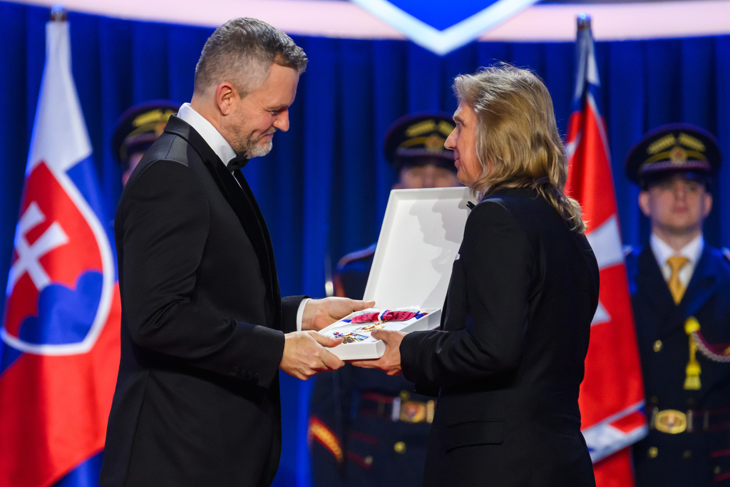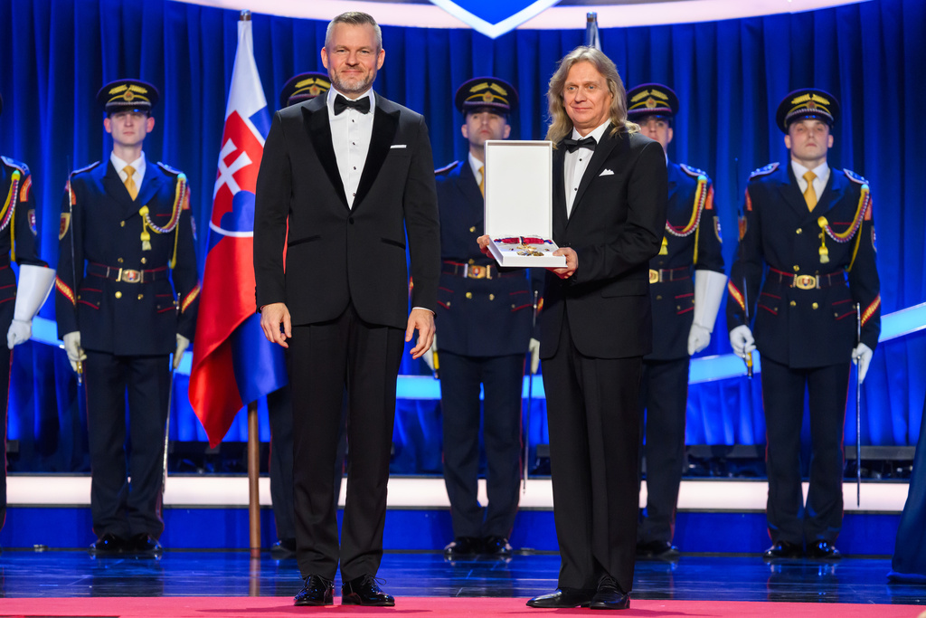 Na snímke krasokorčuliar Jozef Sabovčík (vpravo), ktorému prezident SR Peter Pellegrini (vľavo) udelil štátne vyznamenanie Rad Ľudovíta Štúra I. triedy, občiansky druh počas udeľovania najvyšších štátnych vyznamenaní pri príležitosti vzniku Slovenskej republiky v Bratislave 10. januára 2026. Sabovčík získal vyznamenanie za mimoriadne zásluhy o rozvoj Slovenskej republiky v oblasti športu, ako aj za mimoriadne šírenie dobrého mena Slovenskej republiky v zahraničí.