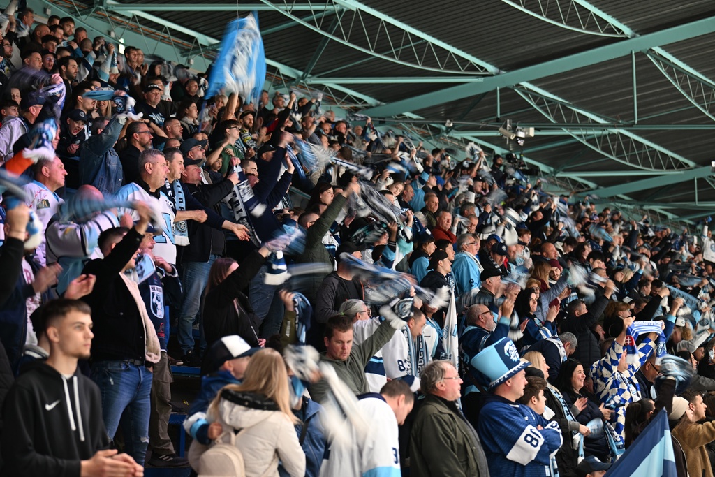 Na snímke radosť fanúúšikov Nitry po strelení gólu počas prvého zápasu semifinále play off hokejovej Tipsport ligy medzi HK Nitra - HK Poprad v piatok 3. apríla 2026 v Nitre.