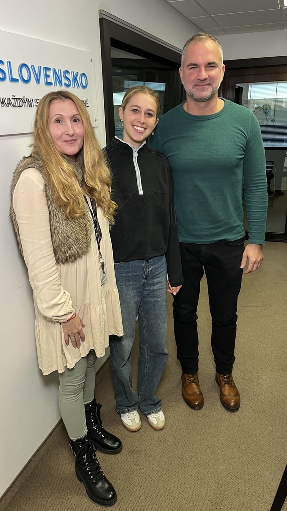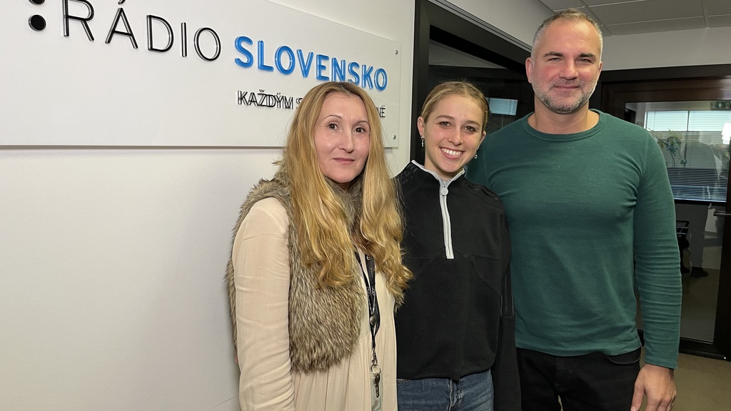 Na fotografii moderátorka Gabika Angibaud, triatlonistka Diana Dunajská a správar Rádia Slovensko Lukáš Zamborský.