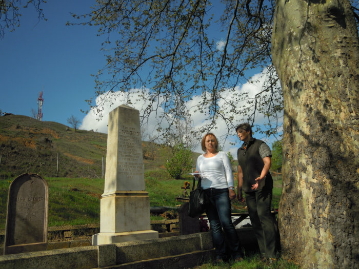 Snímka 4 - Hrob Ľudovíta Greinera. Zľava Eva Vavreková a Mária Rošková.
