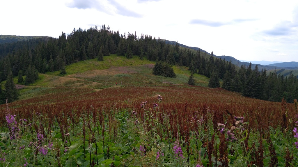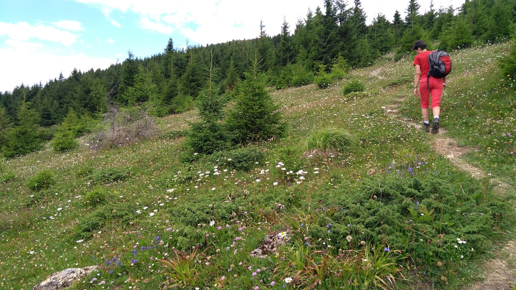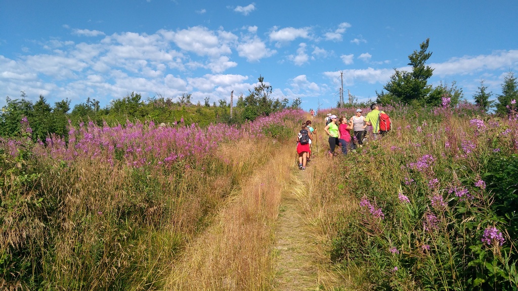 Snímka 3 - Po prudkom stúpaní je chodník príjemnejší - uprostred rozkvitnutej kypriny úzkolistej.