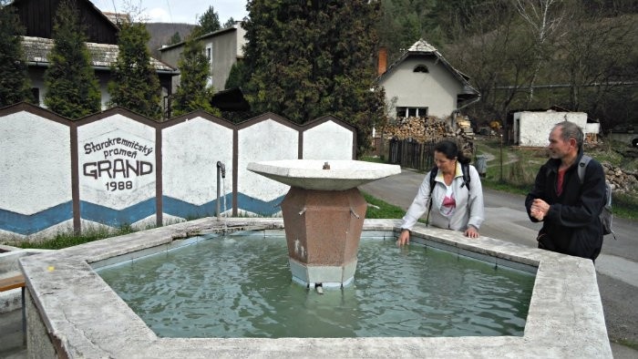 Dva kopce nad Starou Kremničkou v okrese Žiar nad Hronom majú veľavravné názvy: Skalka a Kamenica. Hneď je jasné, že na oboch nájdeme skalné útvary. Na Skalku sme v Rádiovíkende vyšli pred chvíľou, teraz nás čaká výstup na Kamenicu. S Ľudmilou Pulišovou a Františkom Kovárom sme začali v obci na peknom mieste s lavičkami. A s prameňom, ktorý čľapká do kamennej nádržky. Vedľa je nápis „Starokremničský prameň Grand“: