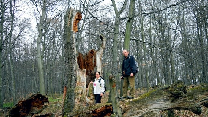Keď z rýchlostnej cesty R1 smerujeme na Kremnicu, všímame si odbočovacie pruhy a vnímame dopravu. Vtedy nemáme veľa času pozorovať kopce za oknami auta. Ale keby sme oči zodvihli, videli by sme, že údolie strážia dva vrchy. Ten nižší je Skalka, ten druhý Kamenica. Na oba sa dá vyjsť z obce Stará Kremnička. Práve preto nás tam zavolal domáci milovník prírody František Kovár, ktorý nadšene propaguje nenáročné trasy v menej známych kútoch Kremnických vrchov. Na Rádiovíkendovú prechádzku prišla aj ďalšia turistka Ľudmila Pulišová. Naším cieľom boli oba kopce. Aby sme sa napojili na žltú značku, ktorá vedie na Skalku, museli sme sa po ceste vrátiť až takmer k R1-tke a potom cez lúku prejsť k chodníku, ktorý vedie od Šášovského hradu.