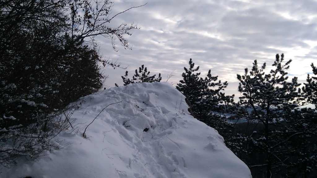 Snímka 3 – Na skale Vieska si pri snehovej pokrývke treba dať pozor, aby ste sa s prevejom nezošmykli dolu.