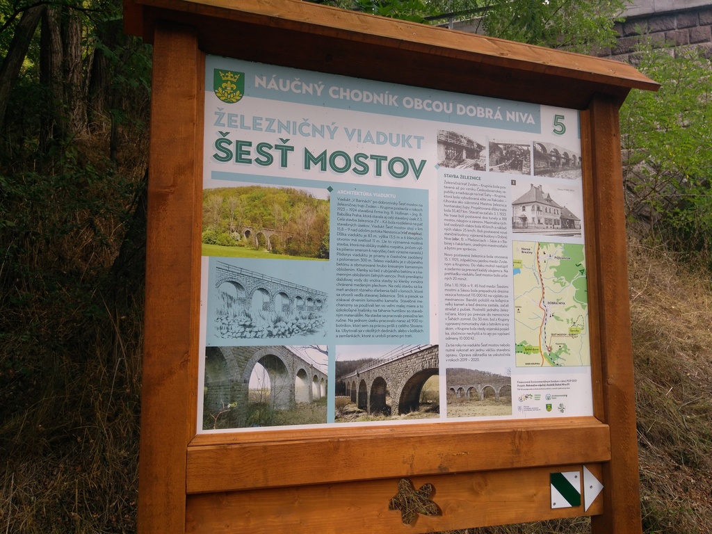 Náučný chodník v okolí Dobrej Nivy vznikol pred necelým rokom. Spolok dobronivských turistov spolu s tamojšou základnou školou prišiel najprv s iným projektom, nakoniec sa myšlienka rozrástla. A dnes výsledok slúži nielen domácim. Chodník je príjemný, jediné stúpanie nás čaká za viaduktom Šesť mostov: treba trochu kráčať lúkami hore, kým sa dostaneme na najvyšší bod chodníka – na Kopanicu:
