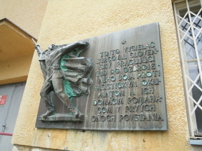 Snímka 4 – Pamätná tabuľa na hlavnej budove Vysielača SNP na Laskomeri nad Banskou Bystricou.
