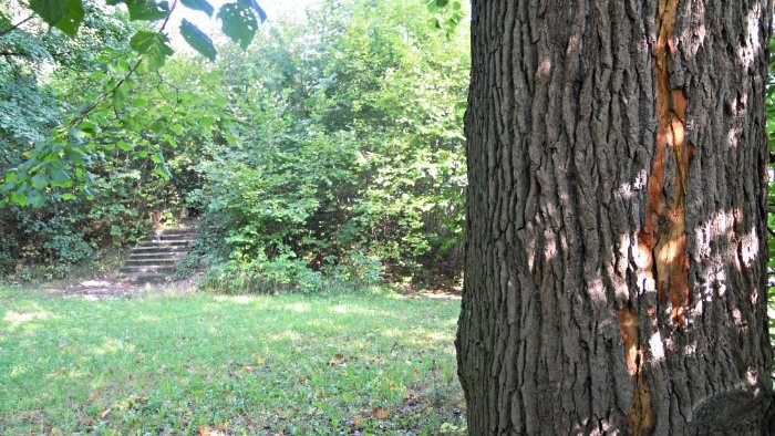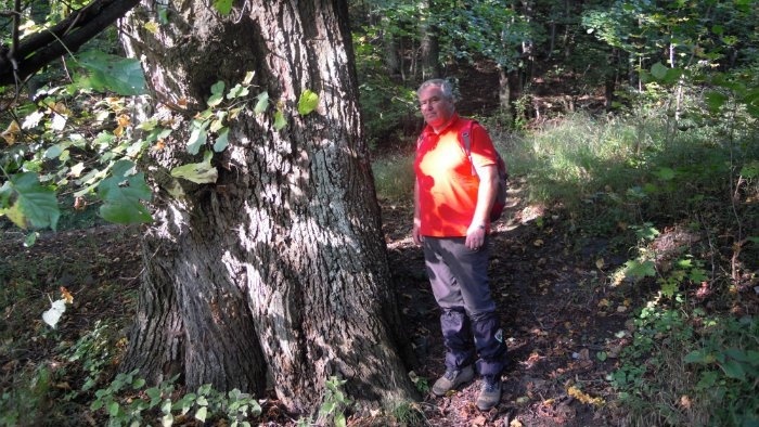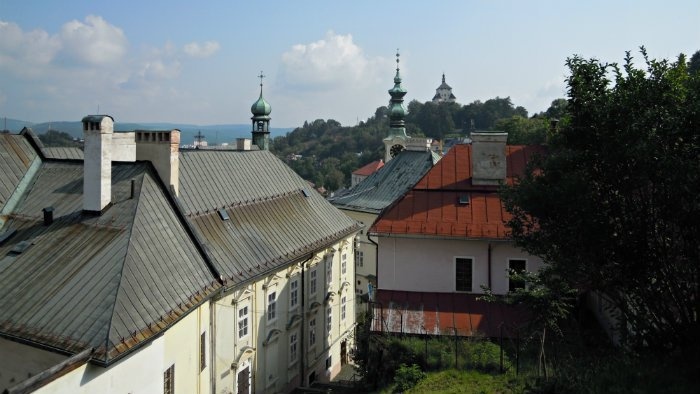 Ten celkom prvý chodník viedol z mesta popri Starom zámku. S domácim turistom Róbertom Melcerom sme tam prechádzku začali, kochajúc sa malebným pohľadom na strechy domov okolo Trojice, na Nový zámok a úbočie s domčekmi, prilepenými k svahu. Vykročili sme však po chodníku, ktorý už vyznačený nie je:
