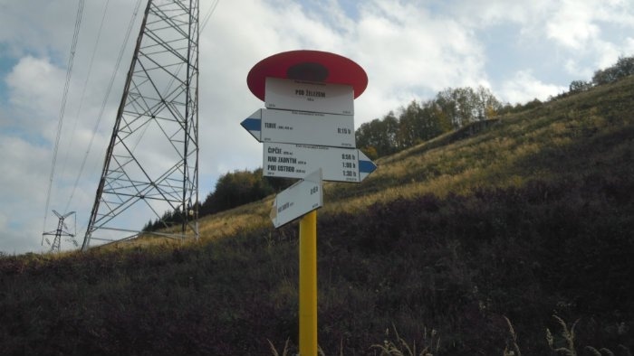 Po hodine cesty sme vyšli na vrchol. Čakal nás zaslúžený výhľad a drevené posedenie okolo ohniska. František Lonc vybral zápisník z vrcholovej schránky, na ktorej bol symbol obce Turie, teda medveď s dvoma čučoriedkami. Vyobrazenie medveďa je jasné, ich výskyt je v tejto oblasti dosť častý, a čo tam robia modré plody?