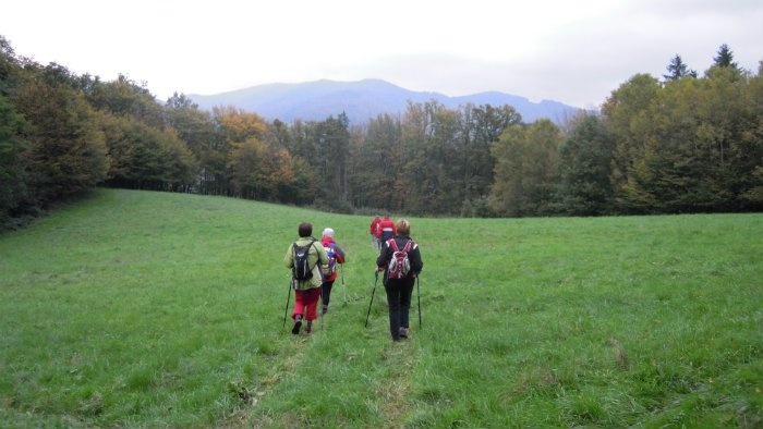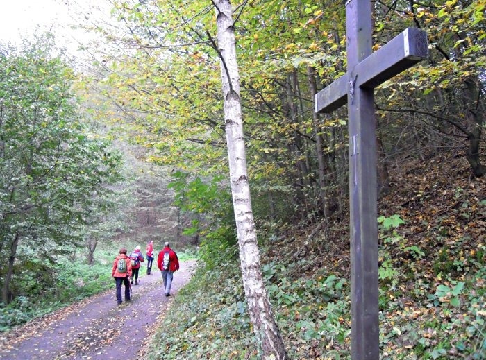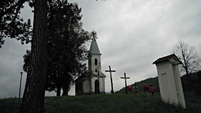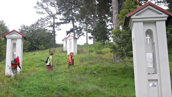 Ale v okolí Žarnovice sa možno vybrať aj inde. I keď je to zložitejšie, lebo sa nemôžeme spoliehať na značky. V Rádiovíkende sa však spoľahneme na domácich turistov. Asi desiati (vrátane predsedu turistického oddielu Jozefa Štefanku) nám robili spoločnosť, keď sme sa s mikrofónom vybrali z mesta na Kostivrch a späť. Čakala nás nenáročná trasa, s miernym stúpaním len v začiatočných fázach. Ani prvý briežok nebol žiadnou kalváriou, hoci kalváriou bol: