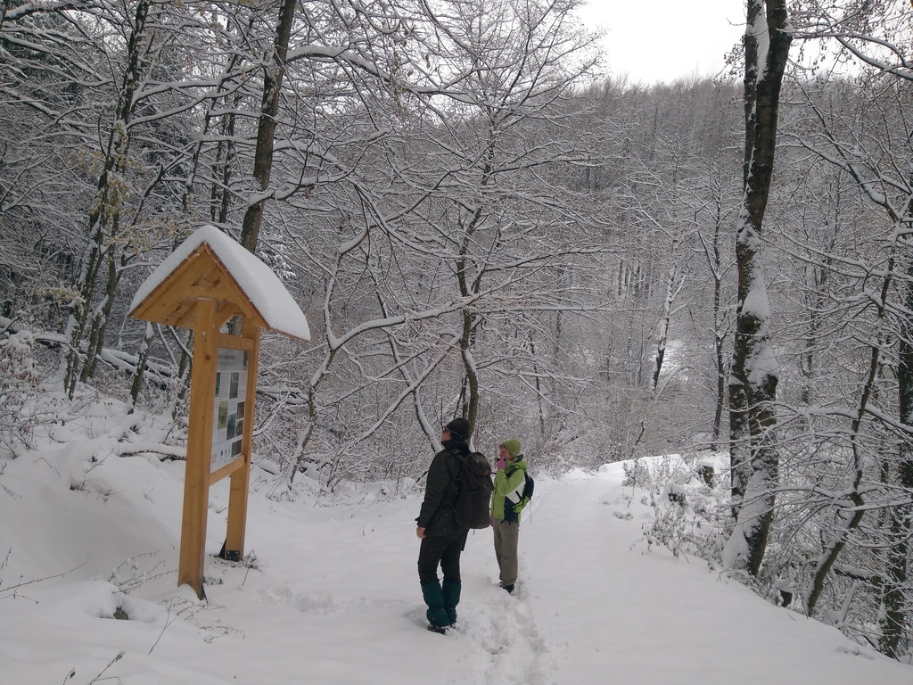 Snímka 1 – Pri prvej tabuli náučného chodníka Inovec. Nahrávka vznikla 23. novembra 2025, skutočne vtedy bolo v teréne toľko snehu!!!