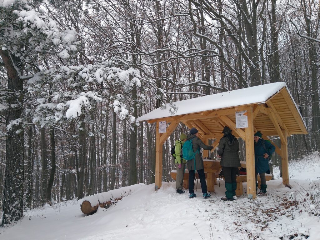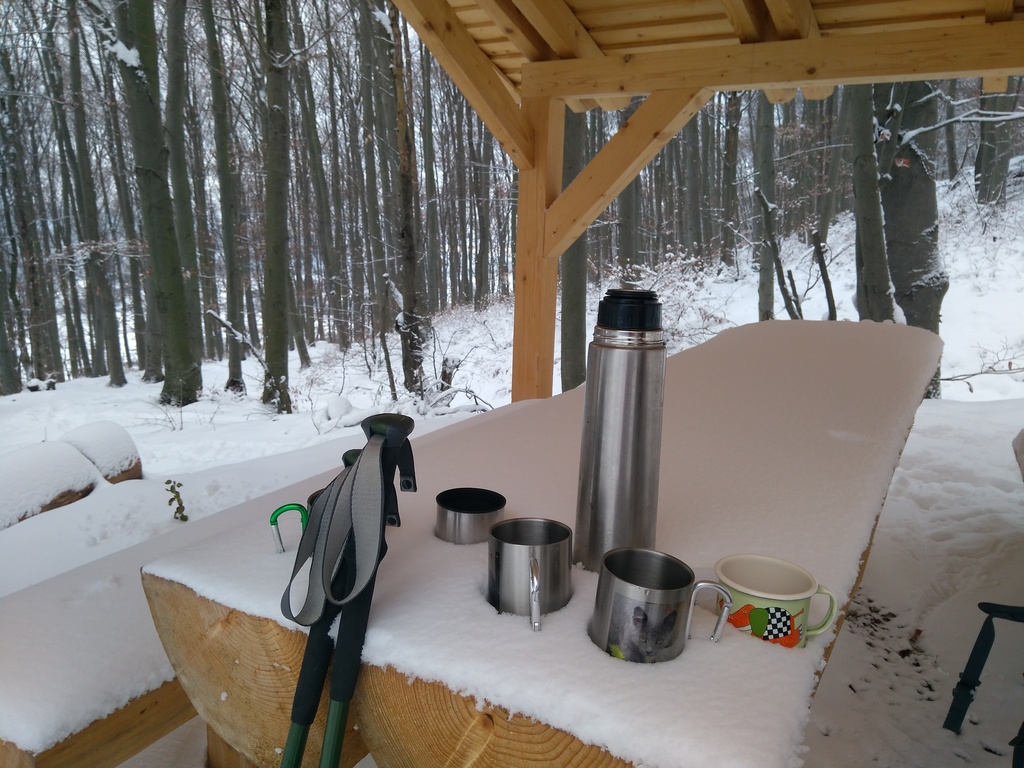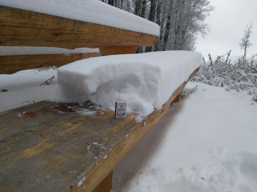 Snímky 10-11 – Oddychové miesto s výhľadom, ktorý sme nevideliJ. A môžete odhadnúť, aká vysoká bola snehová pokrývka, my sme tipovali medzi 20 a 30 cm.