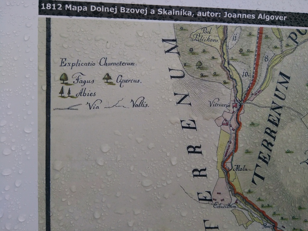 Snímka 14 – Na druhej informačnej tabuli je mapa z čias, keď sa popis písal po latinsky.