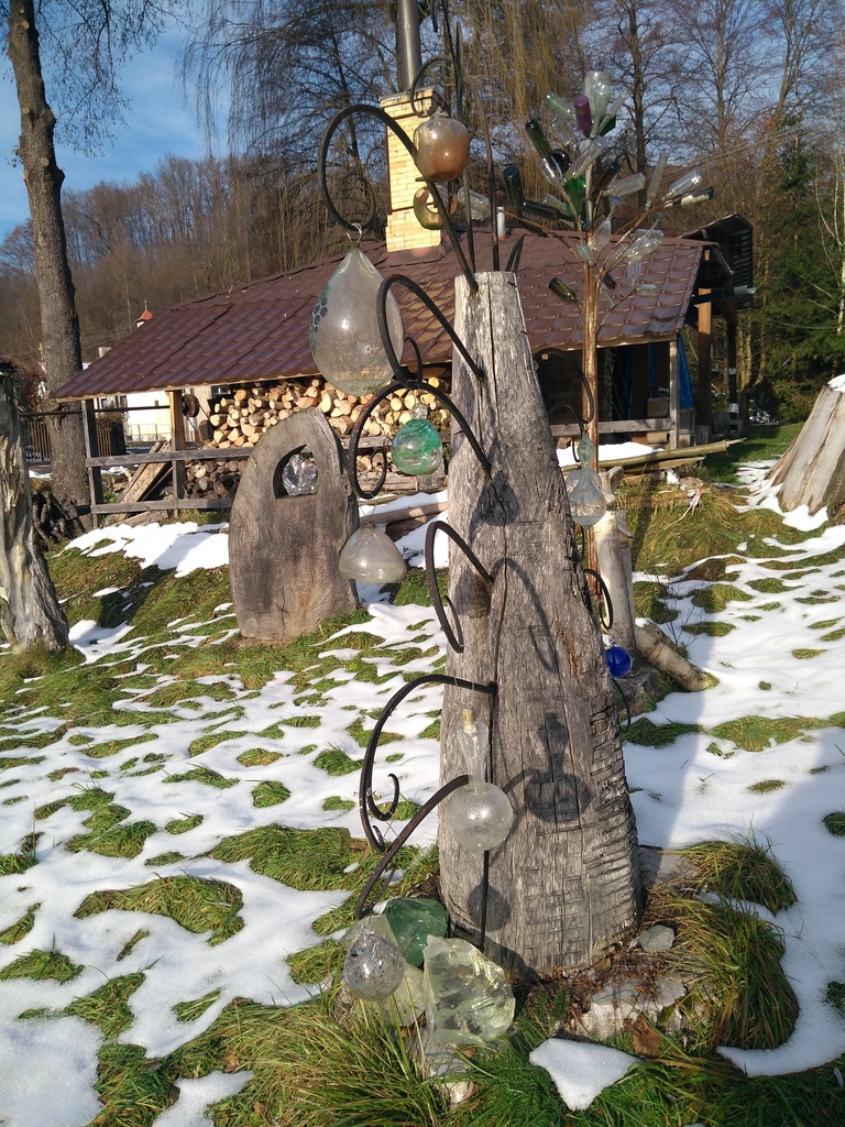 Snímka 2 – Časť umeleckých diel zo sympózia, ktoré býva súčasťou Bzovských sklárskych dní.