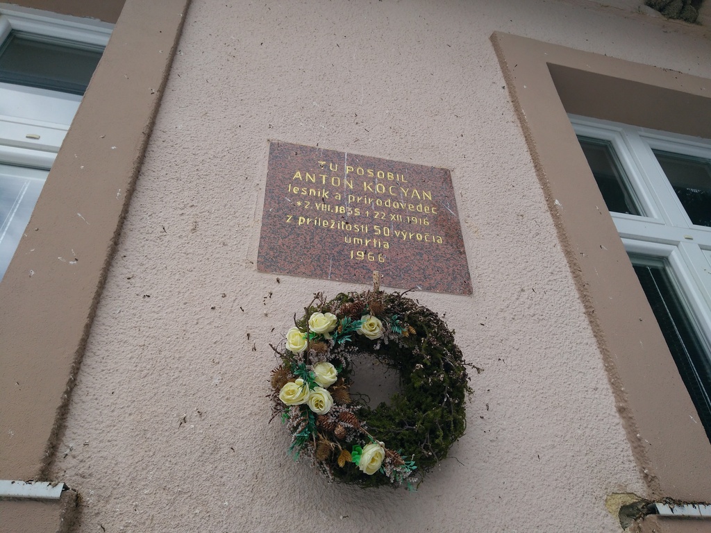 Snímka 1 – Pamätná tabuľa na Antona Kocyana na budove bývalej lesnej správy v Oraviciach. Na tomto mieste stála aj pôvodná horáreň, kde Anton Kocyan pôsobil.