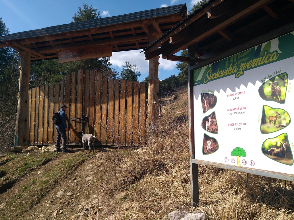 Snímka 8 – Pri zvernici nájdete informácie o danieloch a muflónoch. Strom na spodku tabule je zlatokmenná borovica, ktorú má Švošov v erbe.